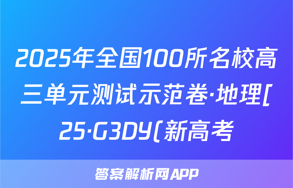 2025年全国100所名校高三单元测试示范卷·地理[25·G3DY(新高考)·地理-XJB-必考-QG](二)答案,目前2025-2026衡水金卷答案网已经汇总了2025年全国100所名校高三单元测试示范卷·地理[25·G3DY(新高考)·地理-XJB-必考-QG](二)答案的各科答案和试卷,获取更多{{papers_name}}答案解析,请在关注本站。