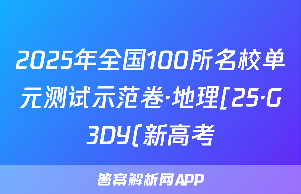 2025年全国100所名校单元测试示范卷·地理[25·G3DY(新高考)·地理-XJB-必考-QG](二) 第二单元 岩石圈与地表形态,目前2025-2026衡水金卷答案网已经汇总了2025年全国100所名校单元测试示范卷·地理[25·G3DY(新高考)·地理-XJB-必考-QG](二) 第二单元 岩石圈与地表形态的各科答案和试卷,获取更多{{papers_name}}答案解析,请在关注本站。