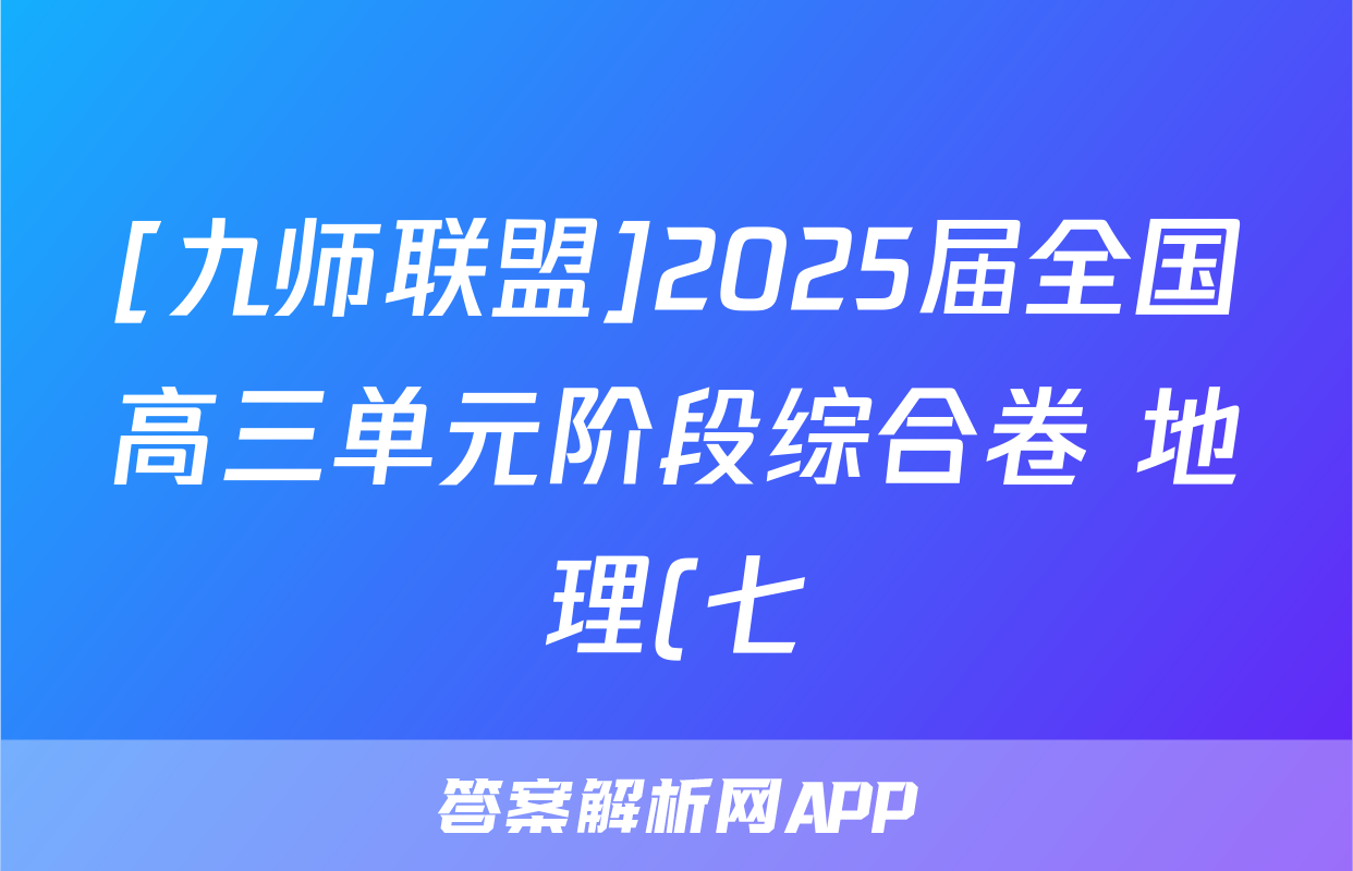 [九师联盟]2025届全国高三单元阶段综合卷 地理(七)7答案,目前2025-2026衡水金卷答案网已经汇总了[九师联盟]2025届全国高三单元阶段综合卷 地理(七)7答案的各科答案和试卷,获取更多{{papers_name}}答案解析,请在关注本站。