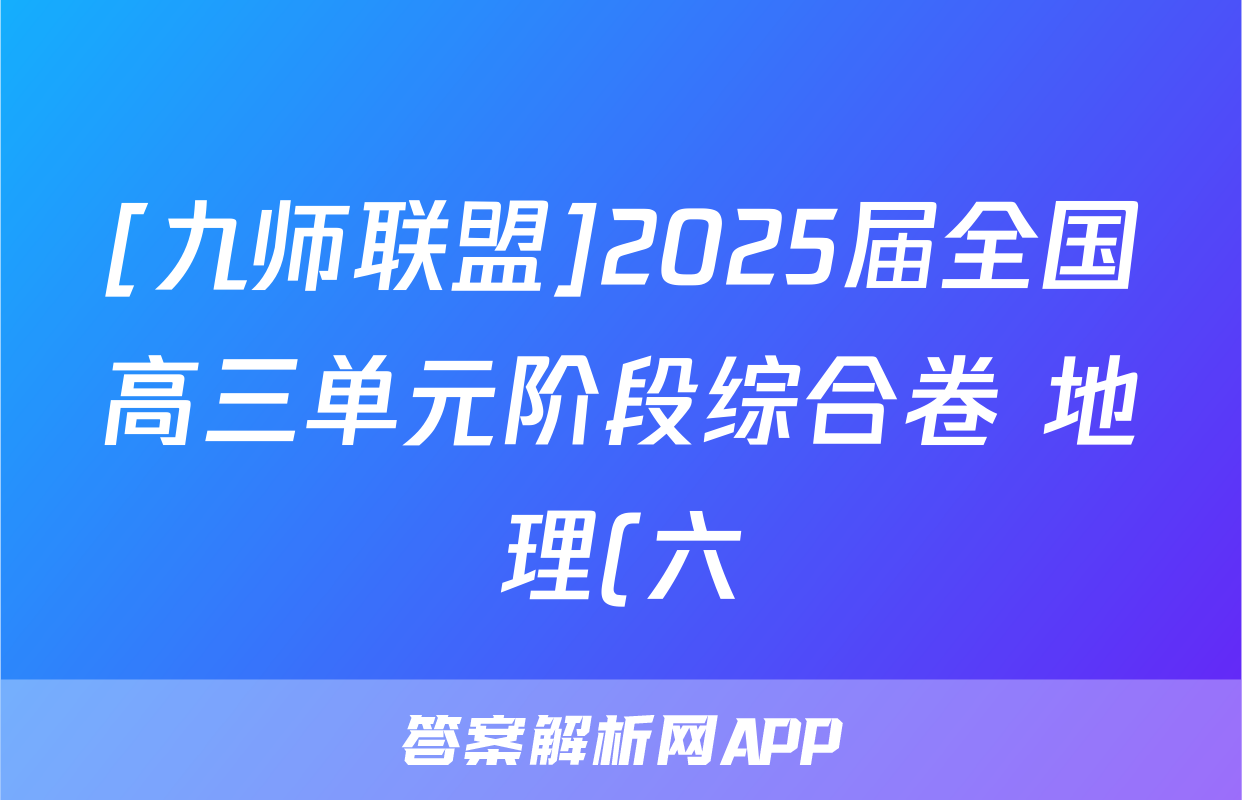 [九师联盟]2025届全国高三单元阶段综合卷 地理(六)6答案,目前2025-2026衡水金卷答案网已经汇总了[九师联盟]2025届全国高三单元阶段综合卷 地理(六)6答案的各科答案和试卷,获取更多{{papers_name}}答案解析,请在关注本站。