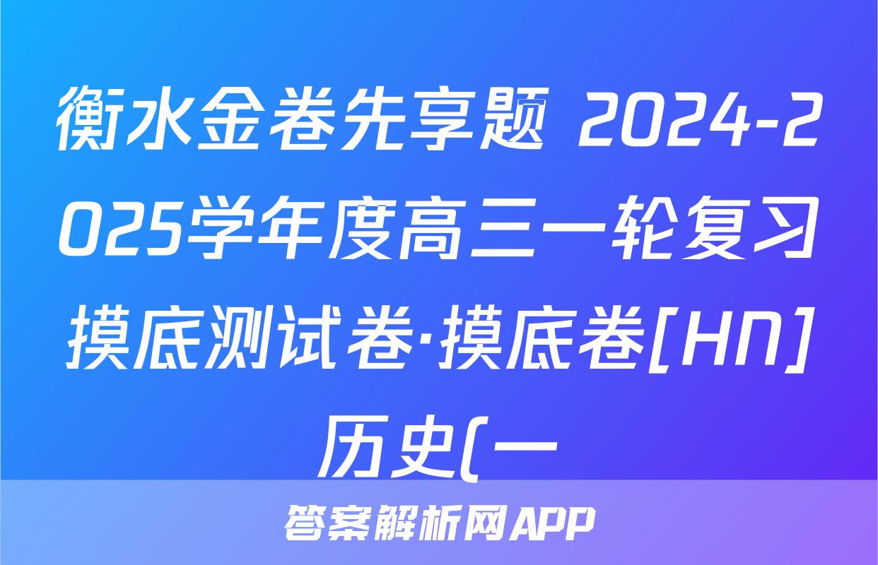 衡水金卷先享题 2024-2025学年度高三一轮复习摸底测试卷·摸底卷[HN]历史(一)1答案,目前2025-2026衡水金卷答案网已经汇总了衡水金卷先享题 2024-2025学年度高三一轮复习摸底测试卷·摸底卷[HN]历史(一)1答案的各科答案和试卷,获取更多{{papers_name}}答案解析,请在关注本站。