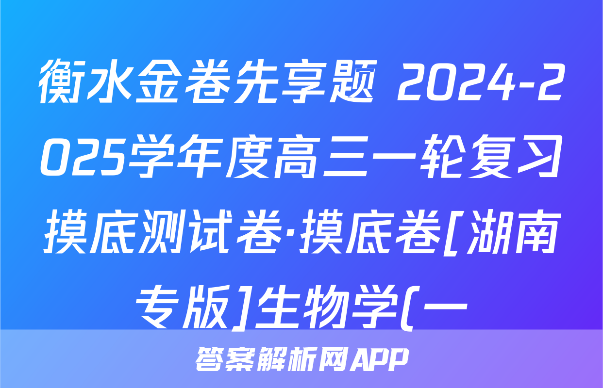 衡水金卷先享题 2024-2025学年度高三一轮复习摸底测试卷·摸底卷[湖南专版]生物学(一)1答案,目前2025-2026衡水金卷答案网已经汇总了衡水金卷先享题 2024-2025学年度高三一轮复习摸底测试卷·摸底卷[湖南专版]生物学(一)1答案的各科答案和试卷,获取更多{{papers_name}}答案解析,请在关注本站。