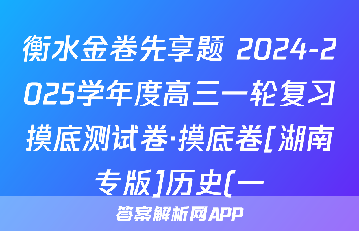 衡水金卷先享题 2024-2025学年度高三一轮复习摸底测试卷·摸底卷[湖南专版]历史(一)1试题,目前2025-2026衡水金卷答案网已经汇总了衡水金卷先享题 2024-2025学年度高三一轮复习摸底测试卷·摸底卷[湖南专版]历史(一)1试题的各科答案和试卷,获取更多{{papers_name}}答案解析,请在关注本站。