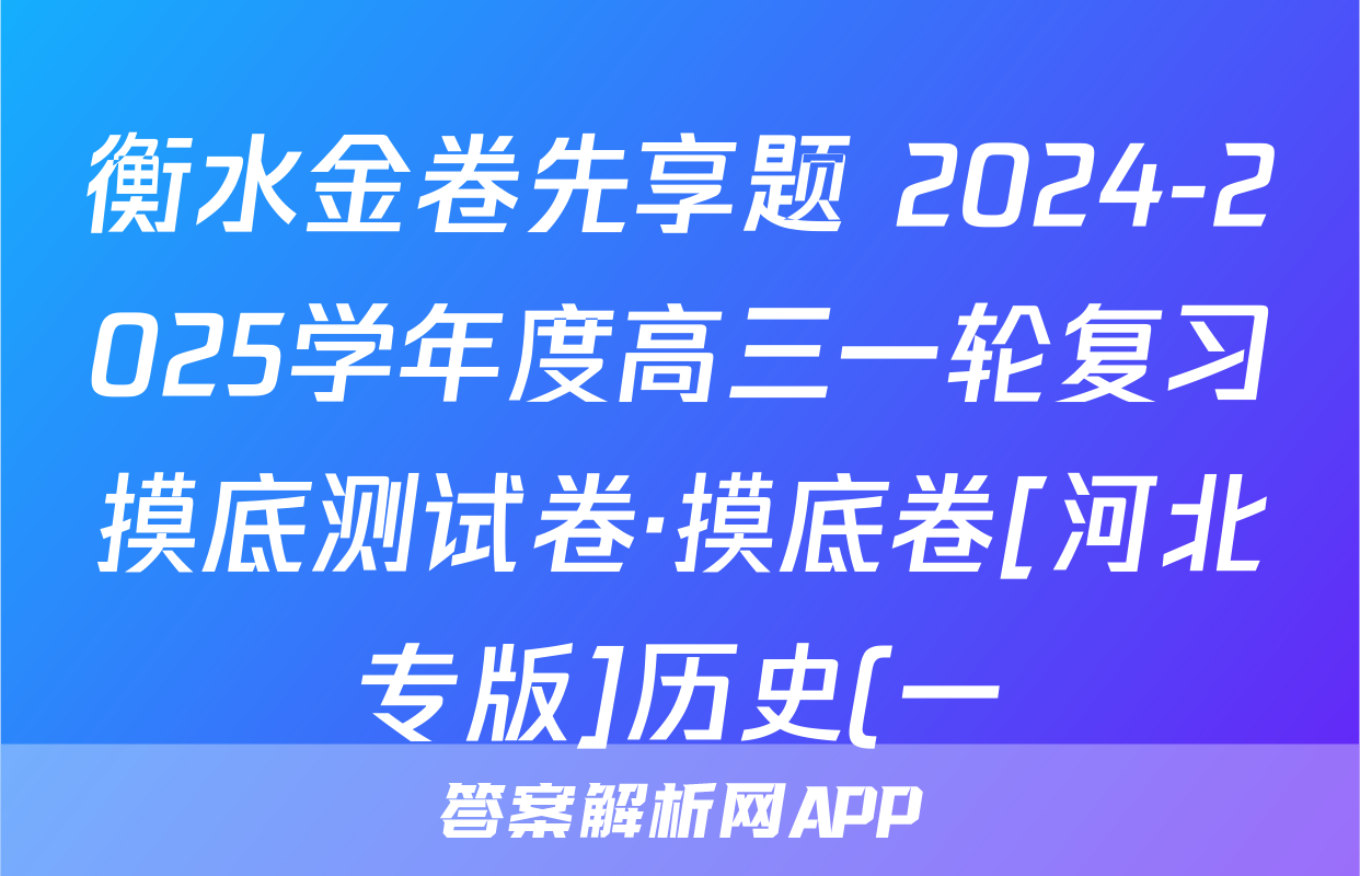 衡水金卷先享题 2024-2025学年度高三一轮复习摸底测试卷·摸底卷[河北专版]历史(一)1答案,目前2025-2026衡水金卷答案网已经汇总了衡水金卷先享题 2024-2025学年度高三一轮复习摸底测试卷·摸底卷[河北专版]历史(一)1答案的各科答案和试卷,获取更多{{papers_name}}答案解析,请在关注本站。