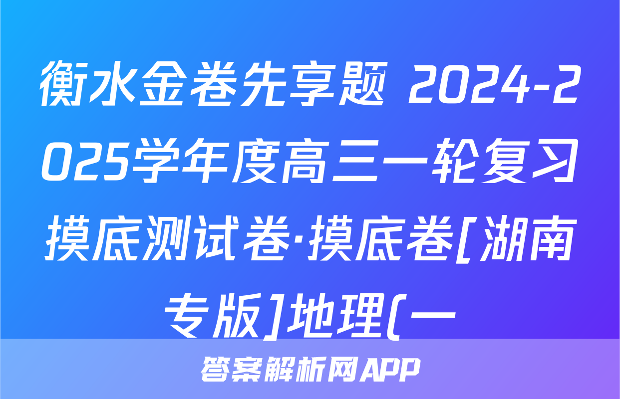 衡水金卷先享题 2024-2025学年度高三一轮复习摸底测试卷·摸底卷[湖南专版]地理(一)1试题,目前2025-2026衡水金卷答案网已经汇总了衡水金卷先享题 2024-2025学年度高三一轮复习摸底测试卷·摸底卷[湖南专版]地理(一)1试题的各科答案和试卷,获取更多{{papers_name}}答案解析,请在关注本站。