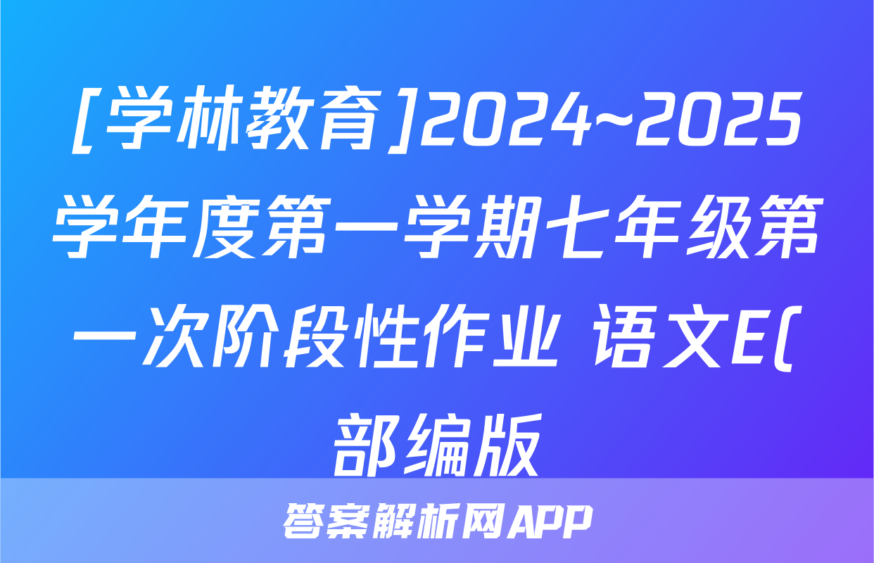 [学林教育]2024~2025学年度第一学期七年级第一次阶段性作业 语文E(部编版)试题,目前2025-2026衡水金卷答案网已经汇总了[学林教育]2024~2025学年度第一学期七年级第一次阶段性作业 语文E(部编版)试题的各科答案和试卷,获取更多{{papers_name}}答案解析,请在关注本站。