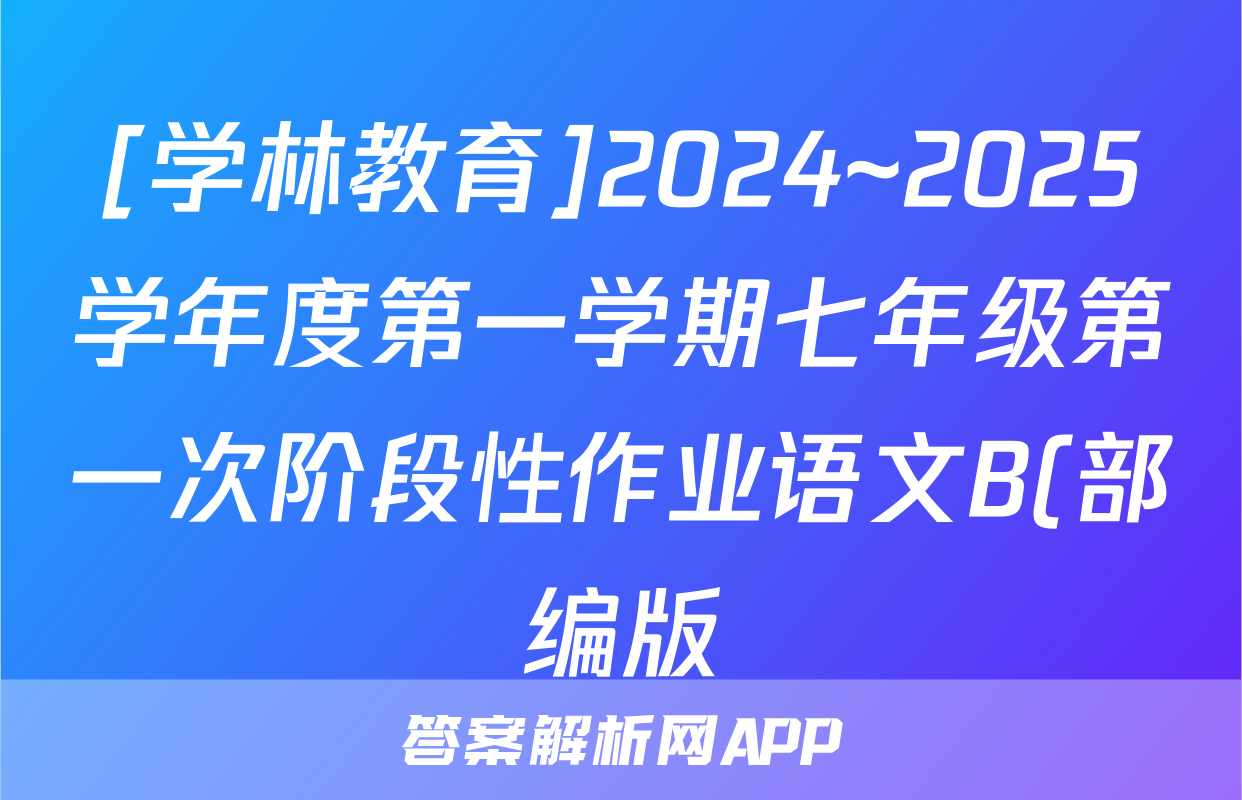 [学林教育]2024~2025学年度第一学期七年级第一次阶段性作业语文B(部编版)答案,目前2025-2026衡水金卷答案网已经汇总了[学林教育]2024~2025学年度第一学期七年级第一次阶段性作业语文B(部编版)答案的各科答案和试卷,获取更多{{papers_name}}答案解析,请在关注本站。