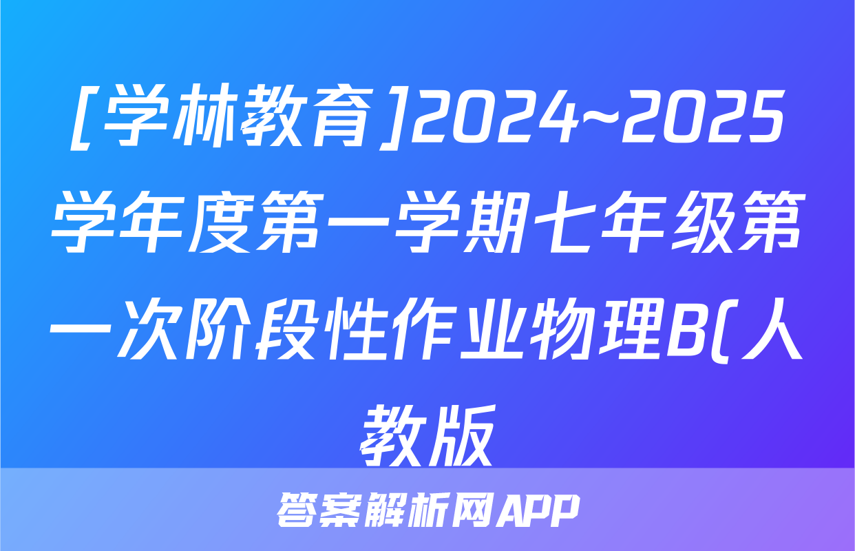 [学林教育]2024~2025学年度第一学期七年级第一次阶段性作业物理B(人教版)答案,目前2025-2026衡水金卷答案网已经汇总了[学林教育]2024~2025学年度第一学期七年级第一次阶段性作业物理B(人教版)答案的各科答案和试卷,获取更多{{papers_name}}答案解析,请在关注本站。
