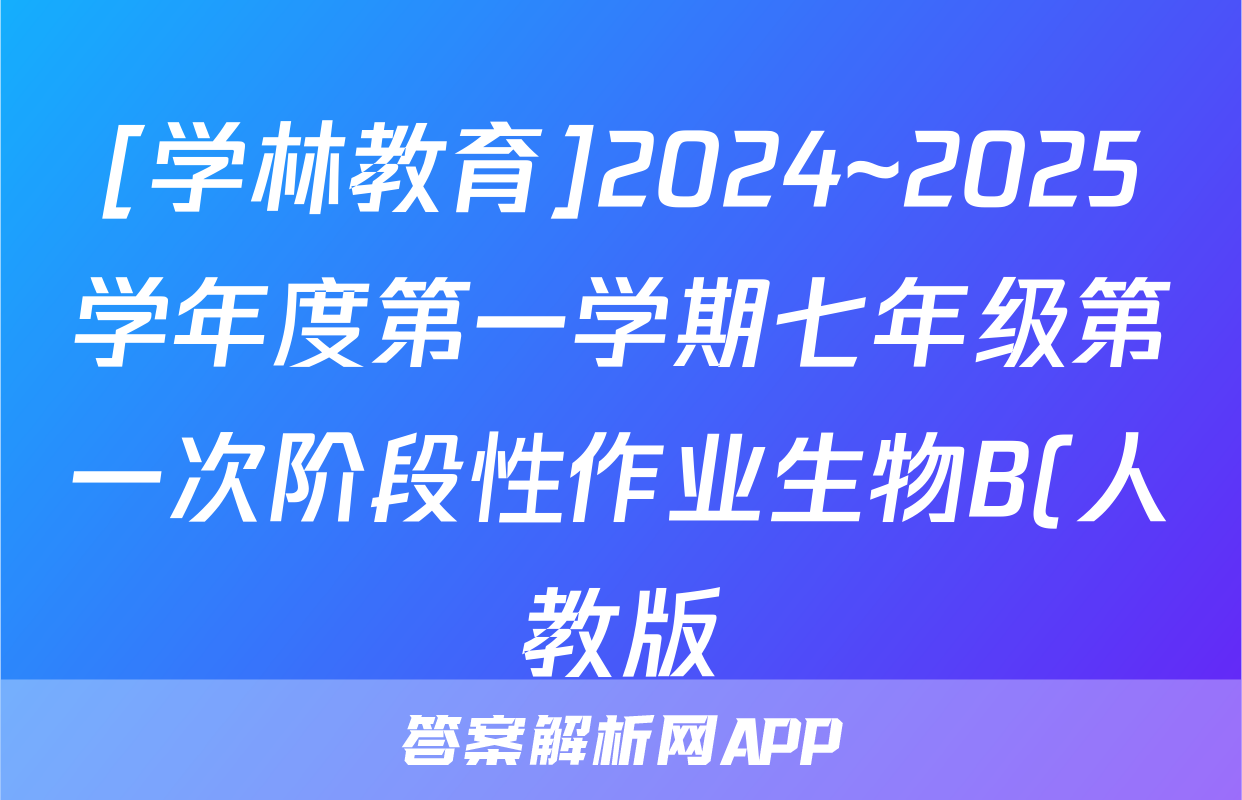 [学林教育]2024~2025学年度第一学期七年级第一次阶段性作业生物B(人教版)试题,目前2025-2026衡水金卷答案网已经汇总了[学林教育]2024~2025学年度第一学期七年级第一次阶段性作业生物B(人教版)试题的各科答案和试卷,获取更多{{papers_name}}答案解析,请在关注本站。