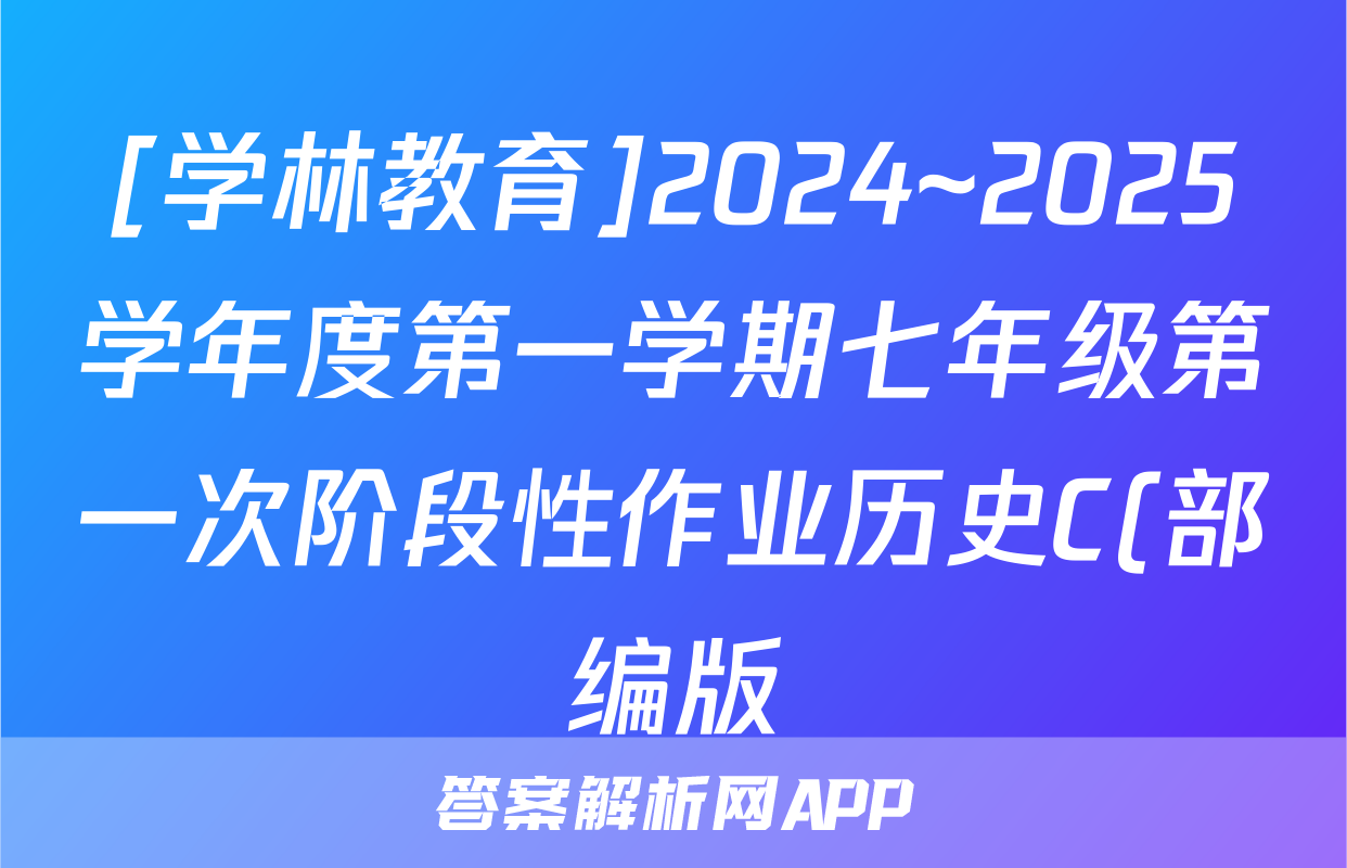 [学林教育]2024~2025学年度第一学期七年级第一次阶段性作业历史C(部编版)答案,目前2025-2026衡水金卷答案网已经汇总了[学林教育]2024~2025学年度第一学期七年级第一次阶段性作业历史C(部编版)答案的各科答案和试卷,获取更多{{papers_name}}答案解析,请在关注本站。