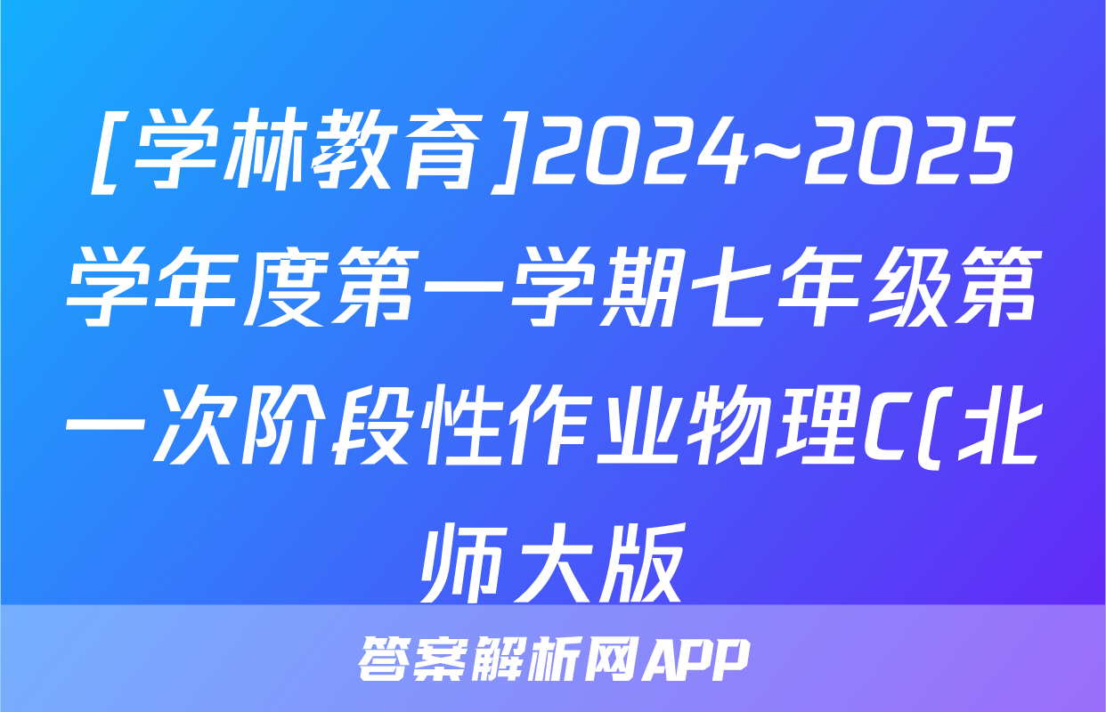 [学林教育]2024~2025学年度第一学期七年级第一次阶段性作业物理C(北师大版)试题,目前2025-2026衡水金卷答案网已经汇总了[学林教育]2024~2025学年度第一学期七年级第一次阶段性作业物理C(北师大版)试题的各科答案和试卷,获取更多{{papers_name}}答案解析,请在关注本站。