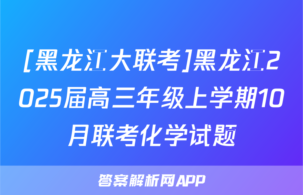 [黑龙江大联考]黑龙江2025届高三年级上学期10月联考化学试题,目前2025-2026衡水金卷答案网已经汇总了[黑龙江大联考]黑龙江2025届高三年级上学期10月联考化学试题的各科答案和试卷,获取更多{{papers_name}}答案解析,请在关注本站。