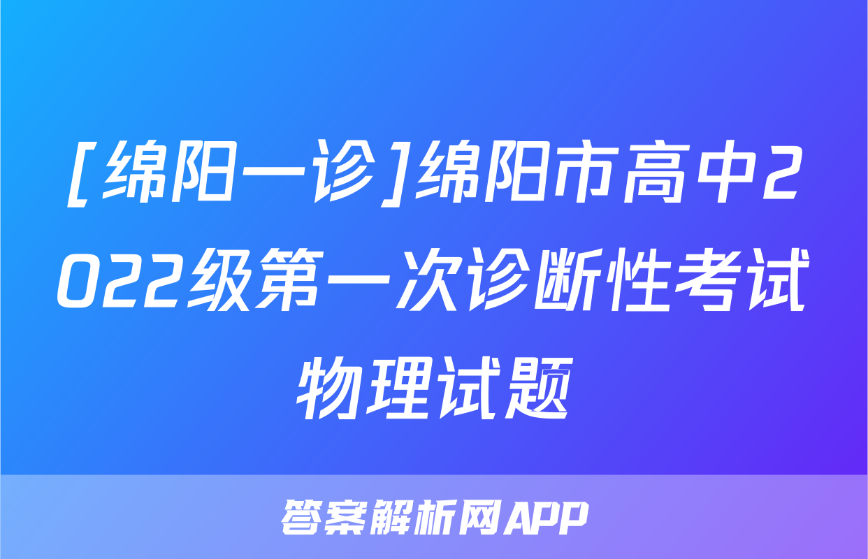 [绵阳一诊]绵阳市高中2022级第一次诊断性考试物理试题,目前2025-2026衡水金卷答案网已经汇总了[绵阳一诊]绵阳市高中2022级第一次诊断性考试物理试题的各科答案和试卷,获取更多{{papers_name}}答案解析,请在关注本站。