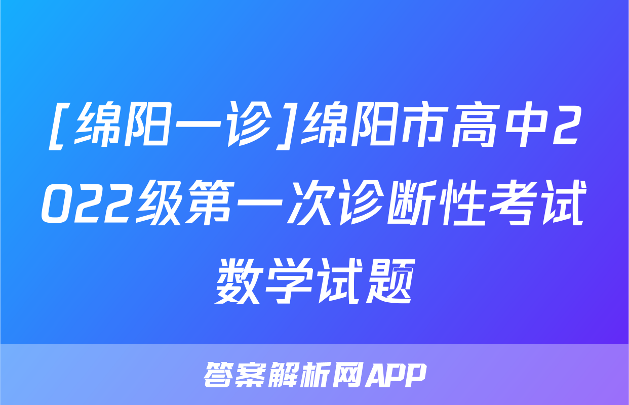 [绵阳一诊]绵阳市高中2022级第一次诊断性考试数学试题,目前2025-2026衡水金卷答案网已经汇总了[绵阳一诊]绵阳市高中2022级第一次诊断性考试数学试题的各科答案和试卷,获取更多{{papers_name}}答案解析,请在关注本站。